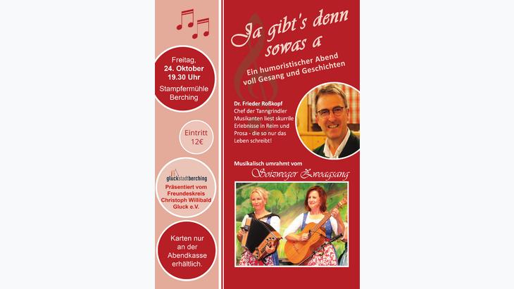 Unter dem Motto “Ja gibt’s denn sowas a?” steht ein humoristischer Abend voll Gesang und Geschichten am Freitag 24. Oktober, um 19.30 Uhr in der Stampfermühle in Berching.