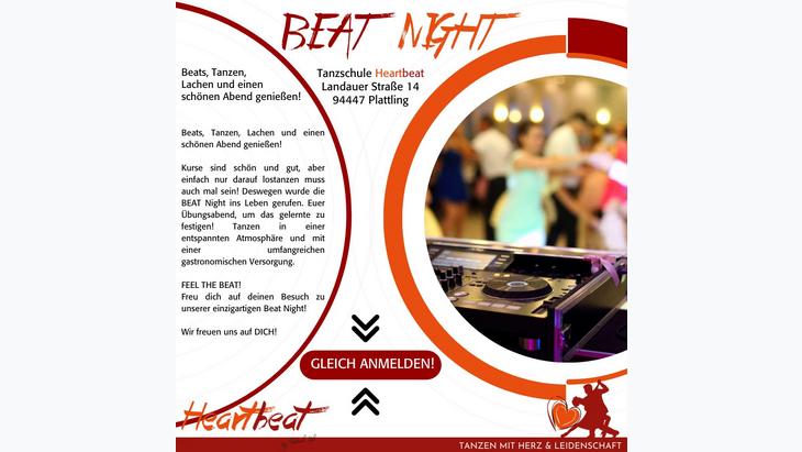 Freu dich auf einen unvergesslichen Abend bei unserer einzigartigen Beat Night! Wir freuen uns auf DICH!