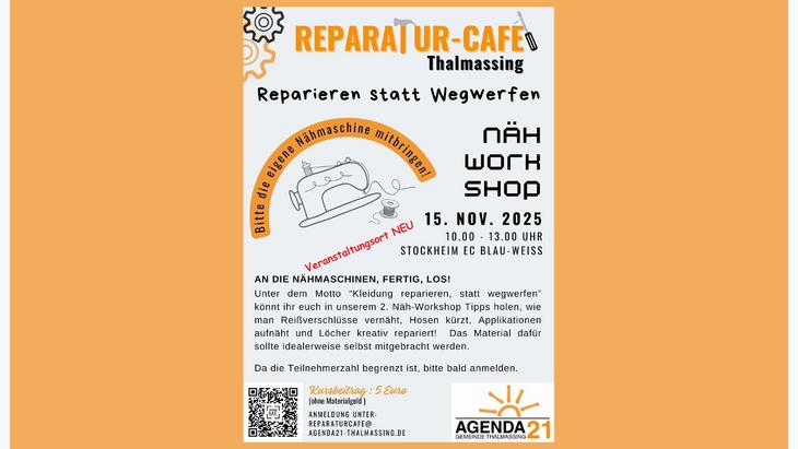 Anmeldung unter: REPARATURCAFE@AGENDA21-THALMASSING.DE